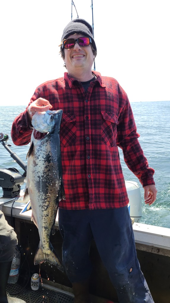 After this incident we were really ready to get out of there. On our way out, I noticed that we were passing right by some very familiar crab boats. To my delight, we cruised right past Cornelia Marie and Time Bandit from Deadliest Catch! In their off-season, it seems that crab boats make income by being salmon tenders. I had been watching these boats on that show for years. Seeing them was one of the highlights of the season for me! I was definitely star-struck.