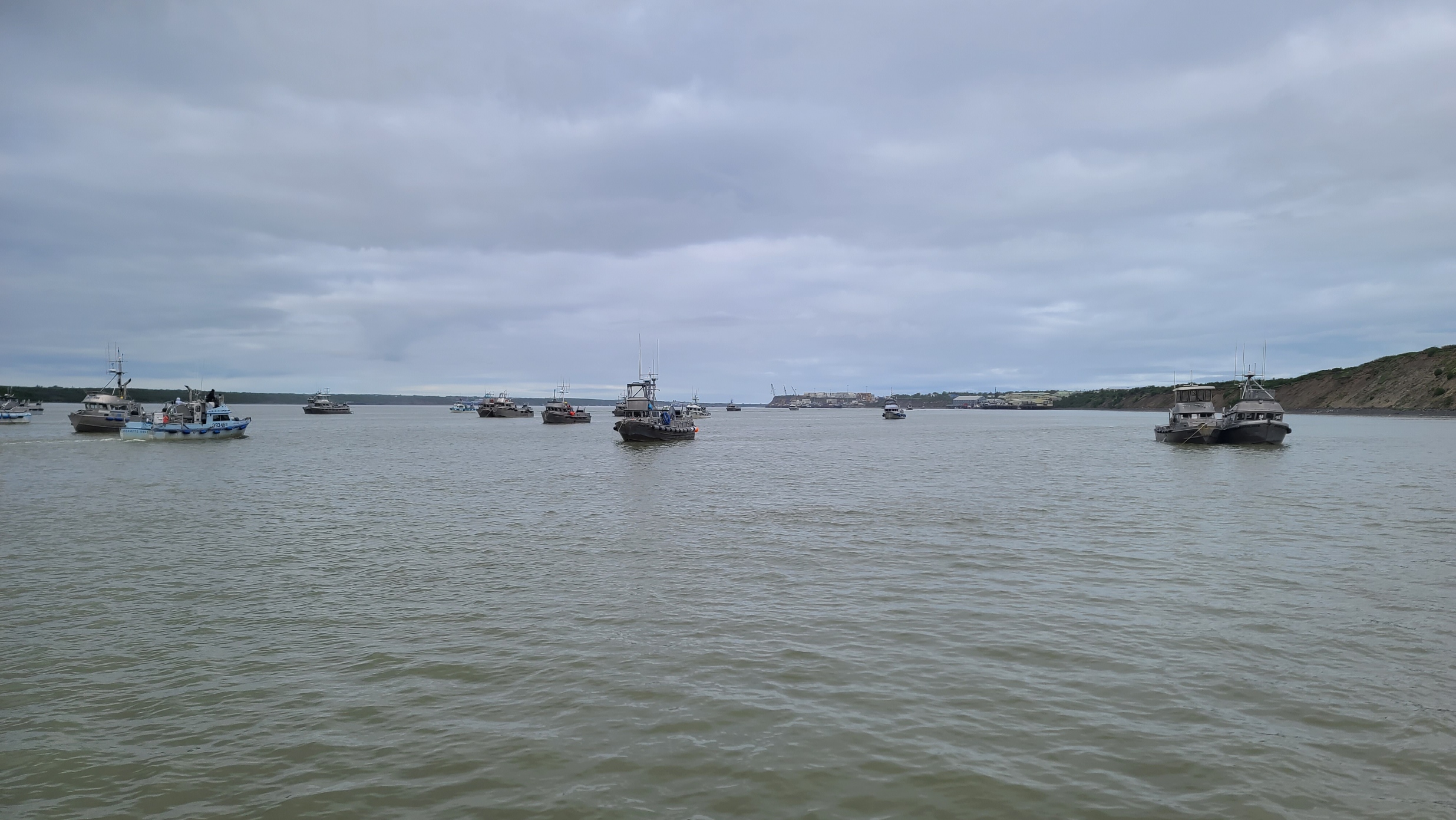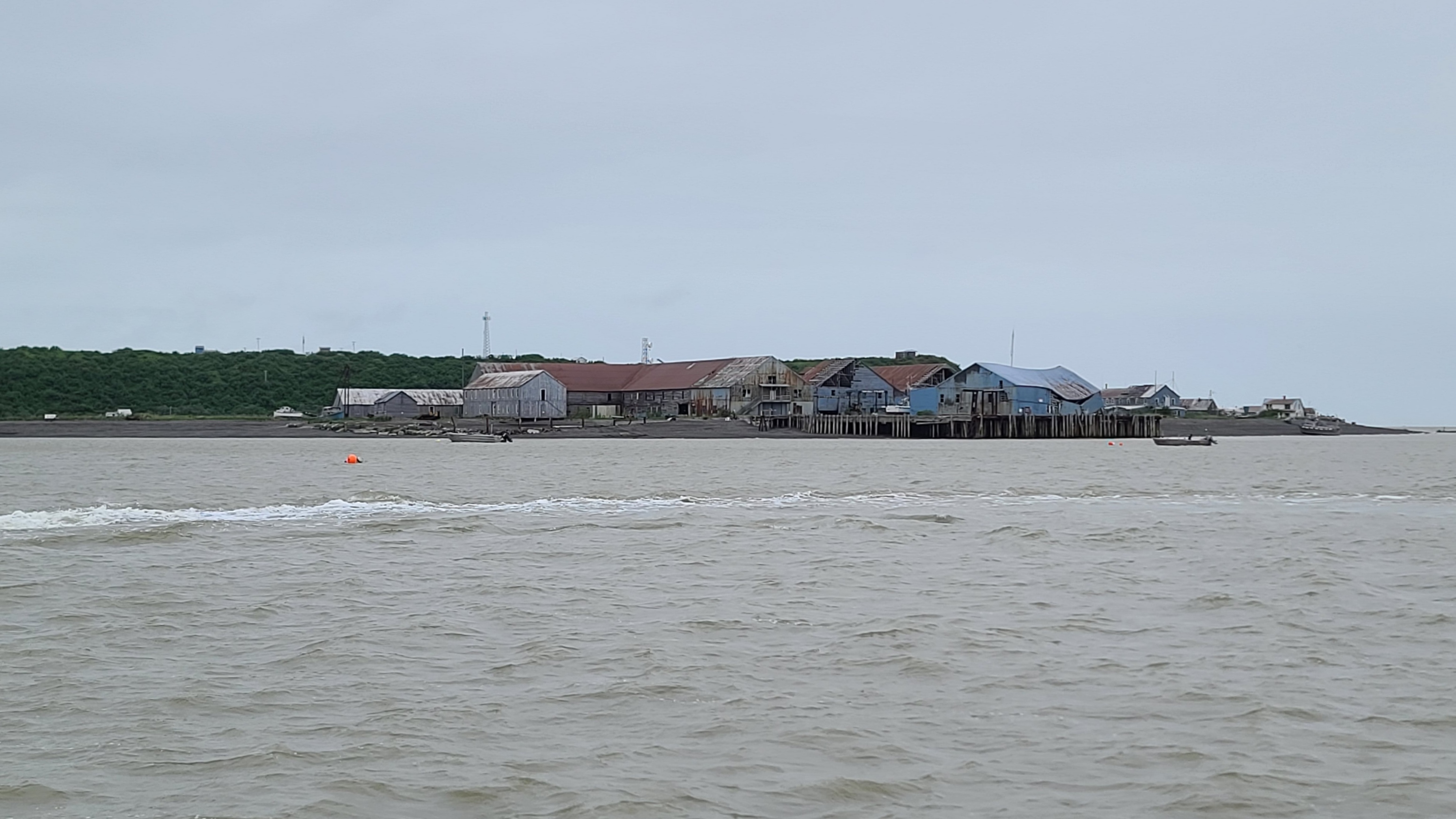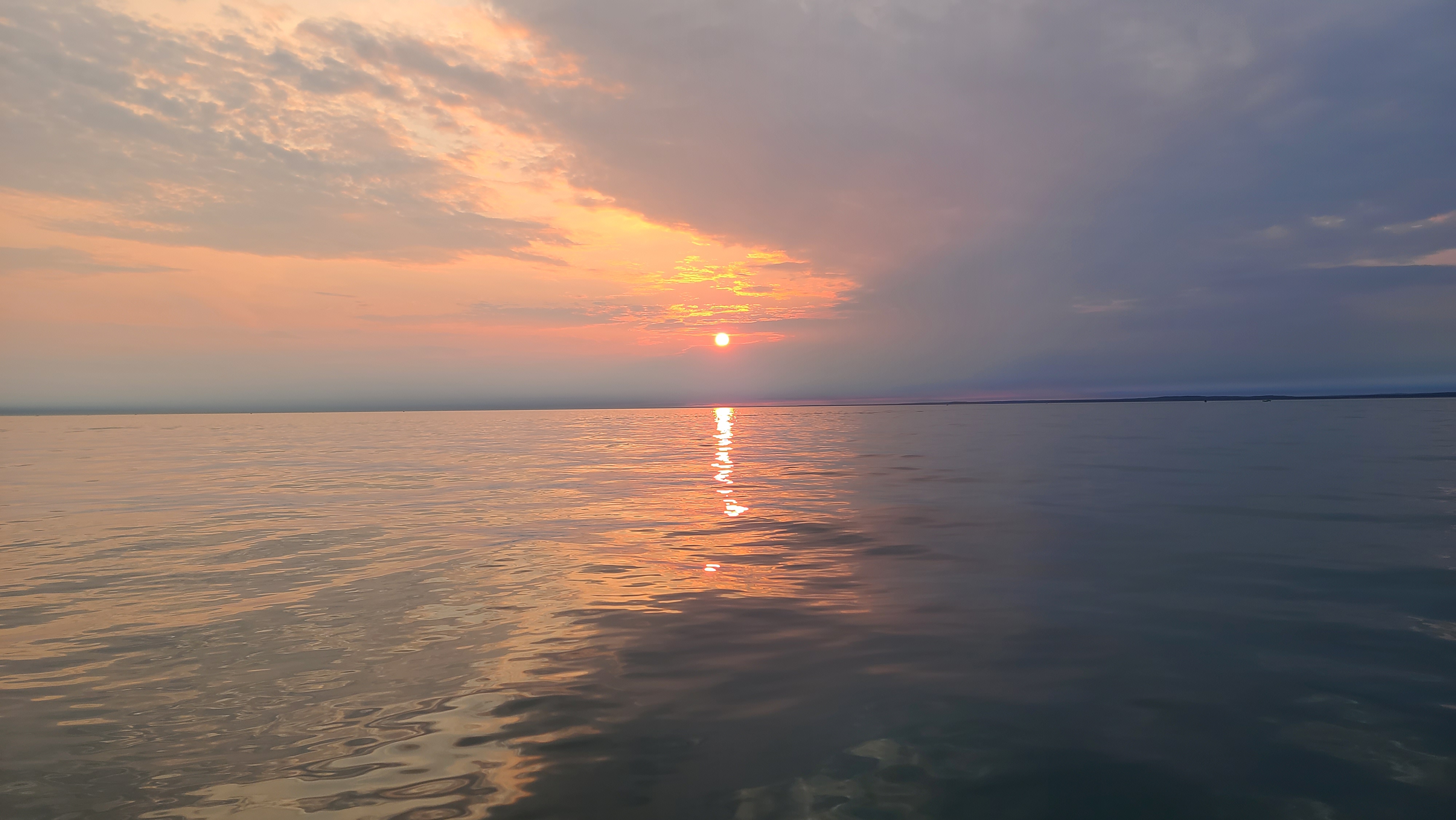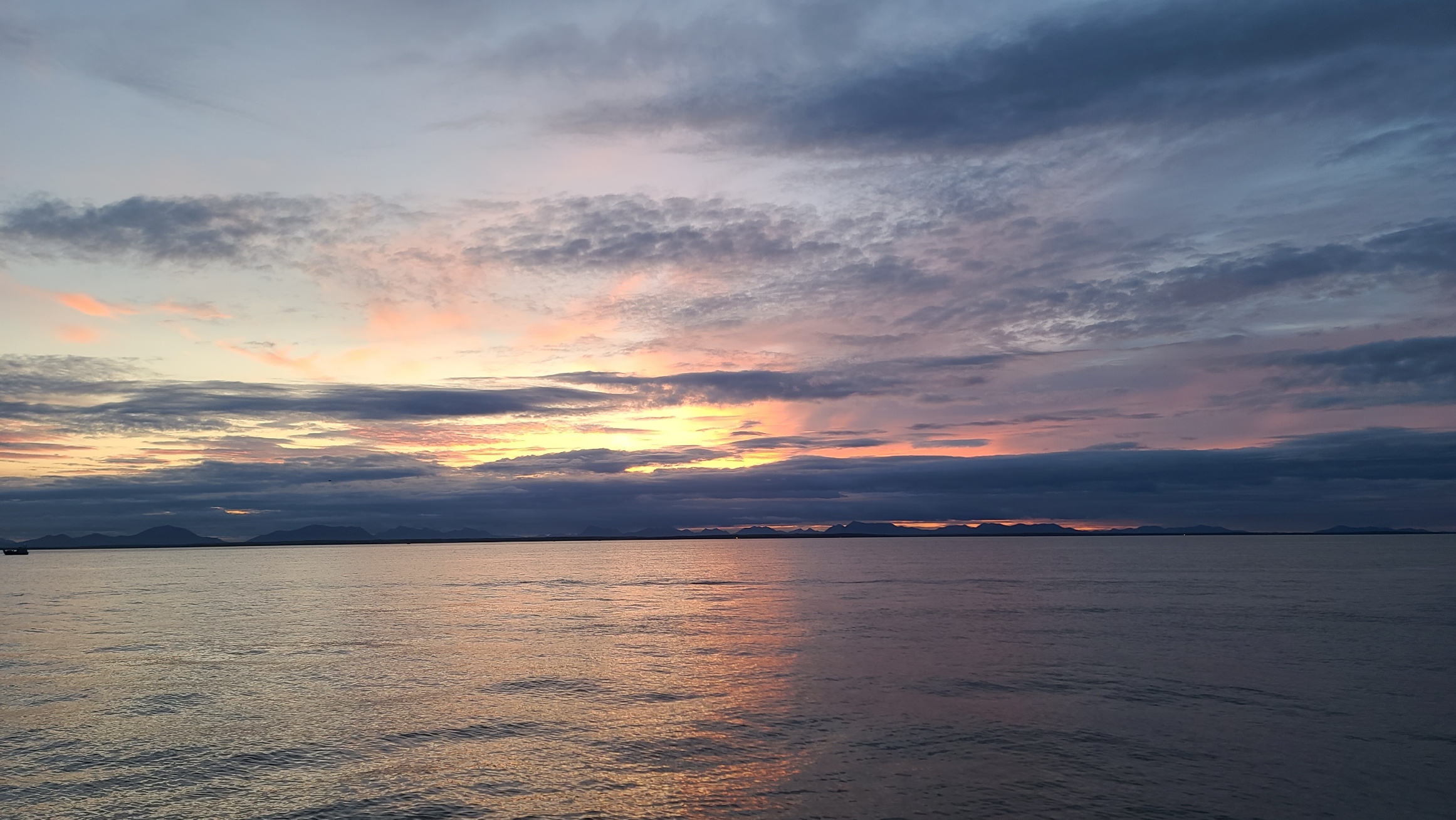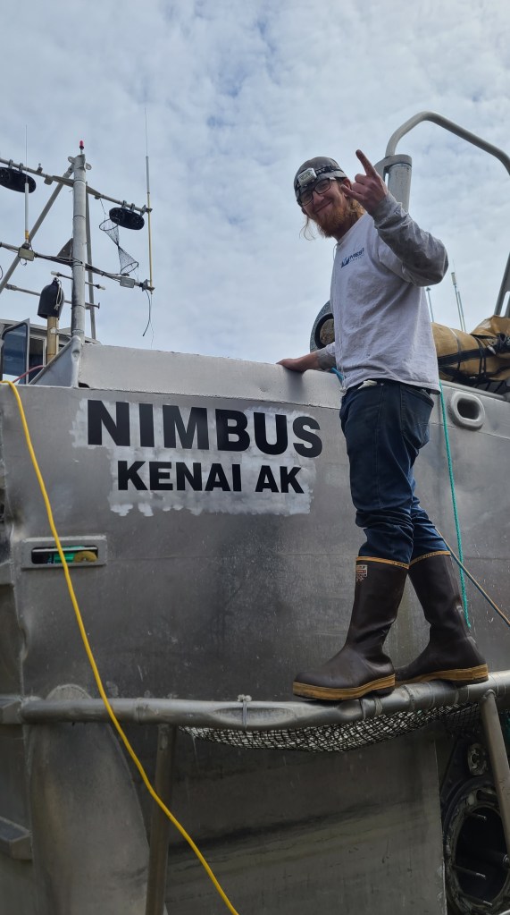 The weather was horrible in addition to the big seas. It got really frustrating to deal with after a while, it’s so exhausting trying to stay on your feet in conditions like that. We were trying to make it work when suddenly gale-force winds came up and it got wild! We pulled in our net and called it a day. It took us a long time to get back to port, as we had to go into the weather. It was a white knuckle ride all the way. After we made our way back to our river anchorage, the skies cleared up a bit and the sunset was gorgeous. It was an intense day, I’d say that was probably the worst conditions I had ever been in out at sea.