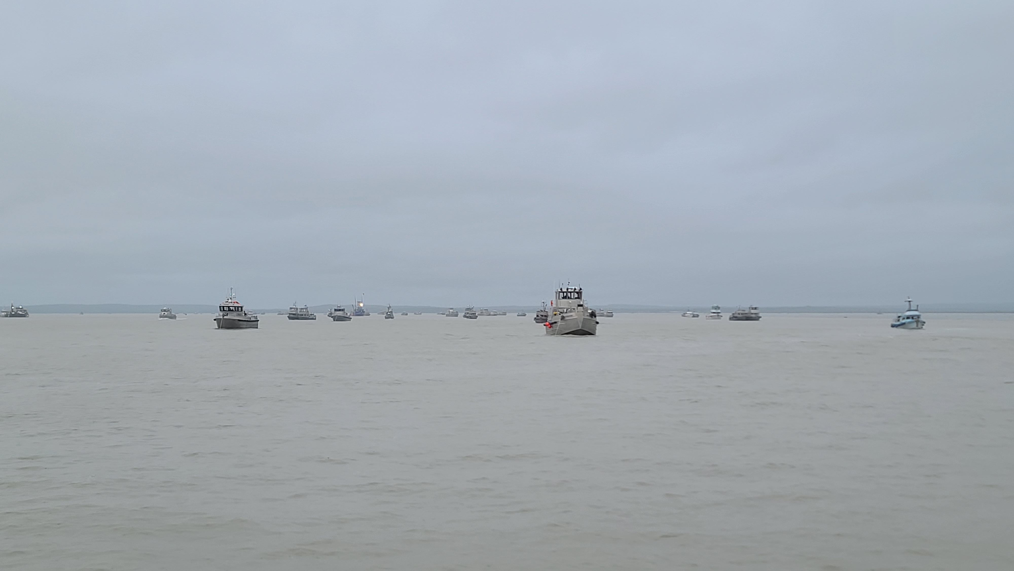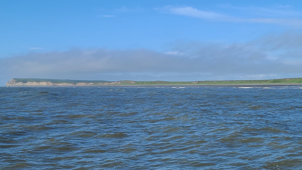 The cruise south was uneventful. When the sun came up, we found ourselves in thick fog. We couldn’t see anywhere past a couple hundred yards distance from the boat. According to the skipper, we were pretty close to where we wanted to be, so we did some test sets. We didn’t really catch much, so we continued on our way. Suddenly huge cliffs loomed out of the fog, and things cleared up enough for us to see a long, deserted beach. Multiple boats soon materialized all around us, and they were all fishing right off the beach. They did this by getting as shallow as they dared, then throwing out the net and pulling quickly away back out to sea. We started fishing the same way. It was a really intense and risky way to fish, but the strategy paid off. We started pulling in nets thick with fish!