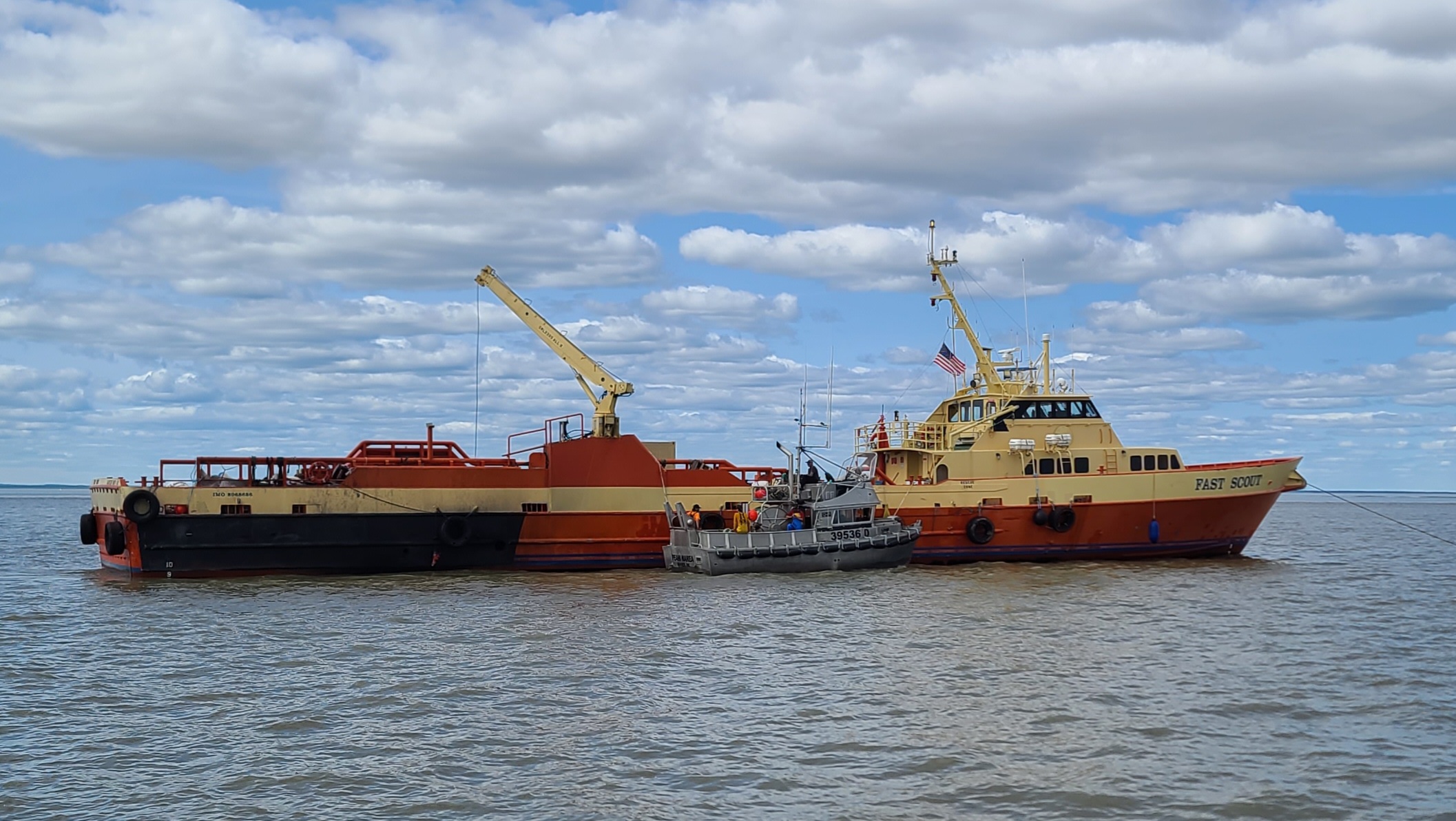 Unfortunately, after all the other local welders fell though, we wound up having to get this lame dude to weld our deck. He showed up and did a mediocre job as expected after much bitching and moaning. The guy charged a huge sum of money for the work as well. We had barely begun cleaning up after all this work when the yard crew showed up ready to re-launch us. I guess the skipper had made an appointment ahead of time and we had taken longer to get the tranny job done than expected. We got them to give us a few extra minutes and we scrambled like mad to get the boat ready to go back in the water. This done, we got towed back down to the river and launched for a second time. Hopefully we wouldn’t be coming back until the season was done!