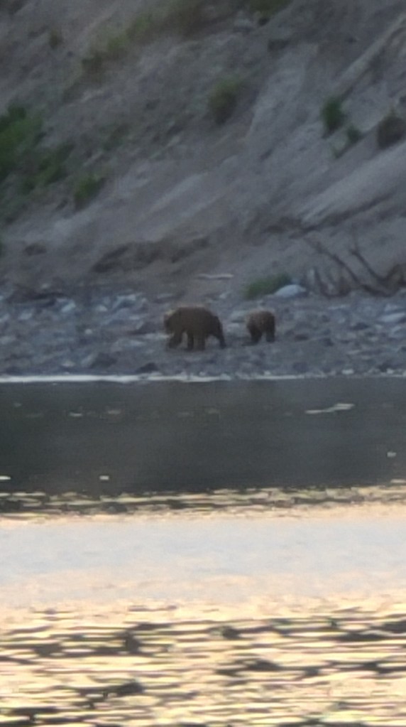We had a mama bear and a cub on our hands. The mama soon walked a short distance to a dumpster close to where our friend had been smoking some salmon. You could hear her banging around in the garbage. The cub stayed right underneath our boat and started to holler at his mother. I think she ditched him to get into some prime garbage and this upset the little fellow. You could tell by all the moaning, groaning and huffing that he was really letting her have it! It was really amazing getting to hear the vocalizations and I’m glad I got some audio recorded of them.
