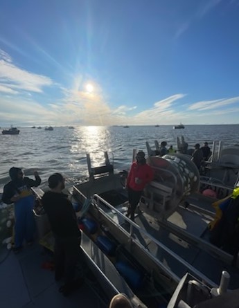 Finally, after two weeks of laboring on the boat, we were reasonably seaworthy. The biggest delay involved getting some parts for the jet and welding it back together. There was really no way to know if everything worked until we got in the water to try everything out. We were beyond ready to start fishing though. Most of the boatyard had left before us and were out in the river at anchor. The season hadn’t officially started yet, but we were all anxious to get going. We were due to launch on a Wednesday and the season was due to start on that Saturday, so we needed to get our sea trials done by then. Before all that would occur, we needed to christen our vessel. Lacking any champagne, the skipper used the next best thing: a warm can of Pabst Blue Ribbon beer!