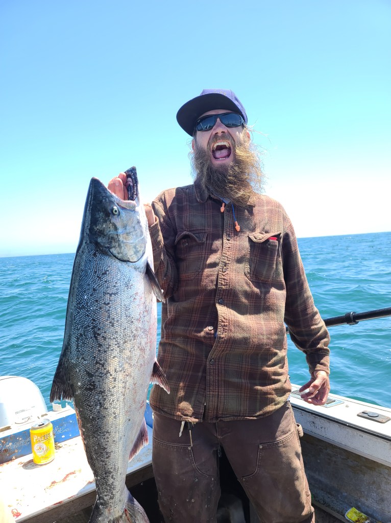 When I got back up to Last Chance, Jacob informed me that Catdaddy had gotten in touch with him. He was rip-roaring to go out salmon fishing again, and they had made plans to do just that. I was pretty wiped out from rock-hopping all day, but I figured I’d be recovered by the next morning so I said I’d go with them. Hopefully I’d get into the fish once again! The odds were pretty good, the conditions were going to be perfect, and the salmon had been on the bite.