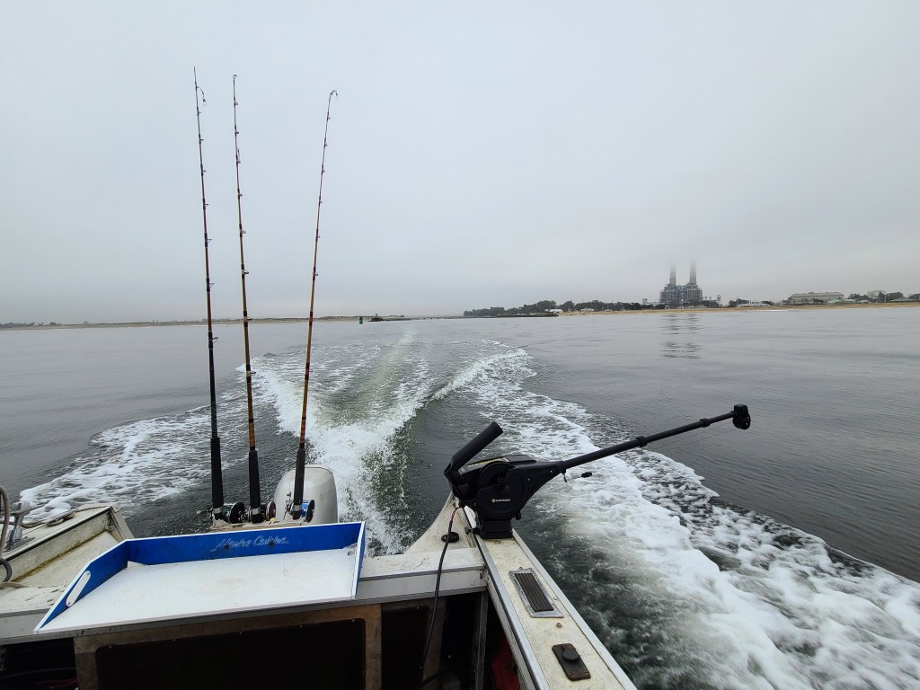 I got to bed early and caught some good sleep. The next day I was sore but had decent energy, enough for a day of salmon fishing at least! Jacob and I picked up Catdaddy and the Sea King as usual and had an uneventful launch at Moss Landing. The seas were dead calm and the winds were almost nonexistent as well. There was ample fog cover and a rising tide, so conditions were optimal for fishing.