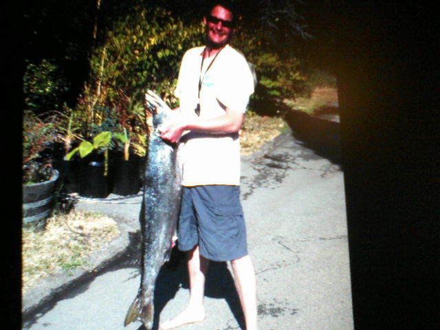 Interestingly, the salmon has a big bite mark on its side that had to come from a sea lion or shark. We figured that it most likely was a sea lion, but thought it would be bad-ass if this warrior salmon had escaped from the clutches of a Great White Shark!