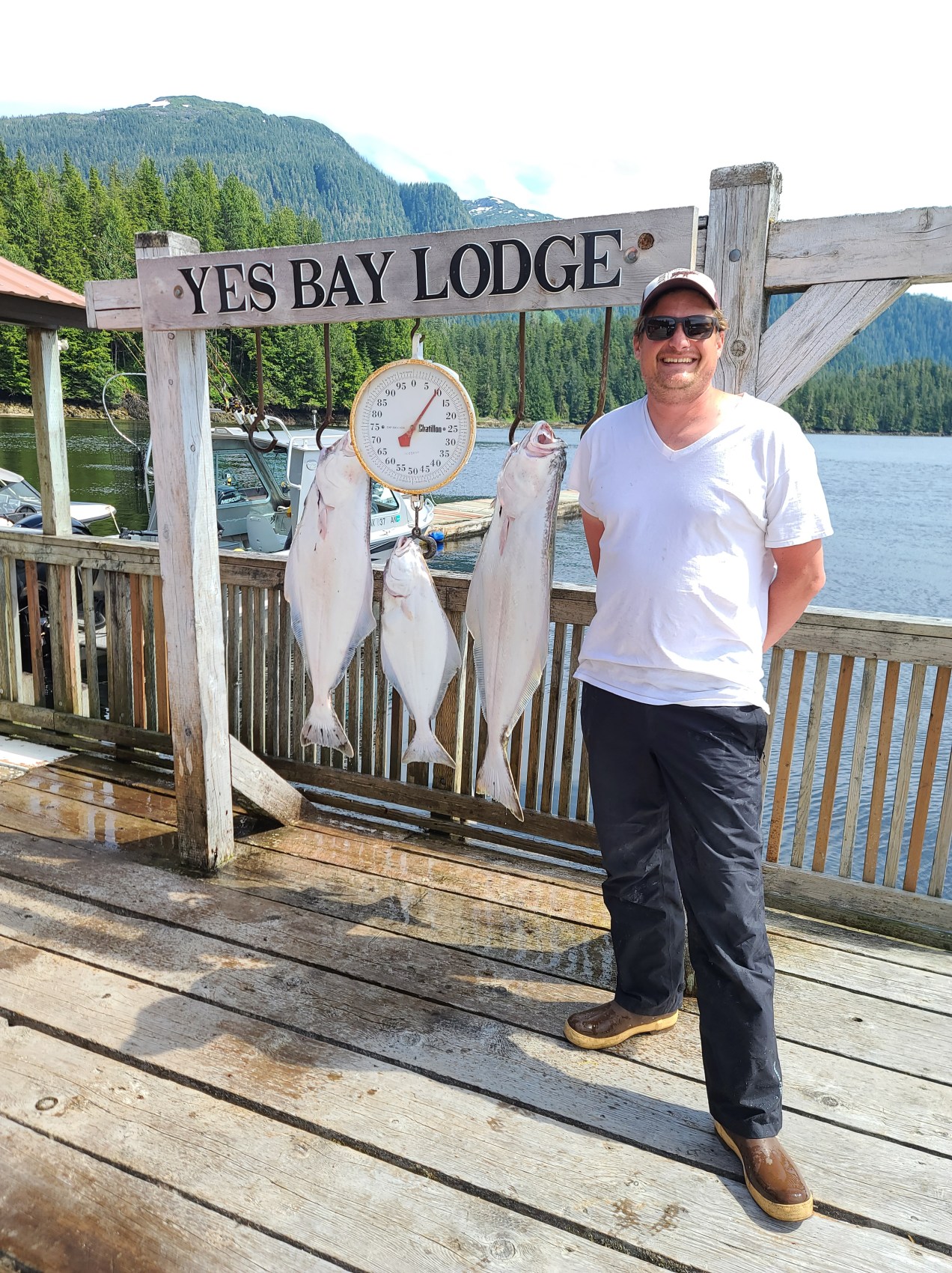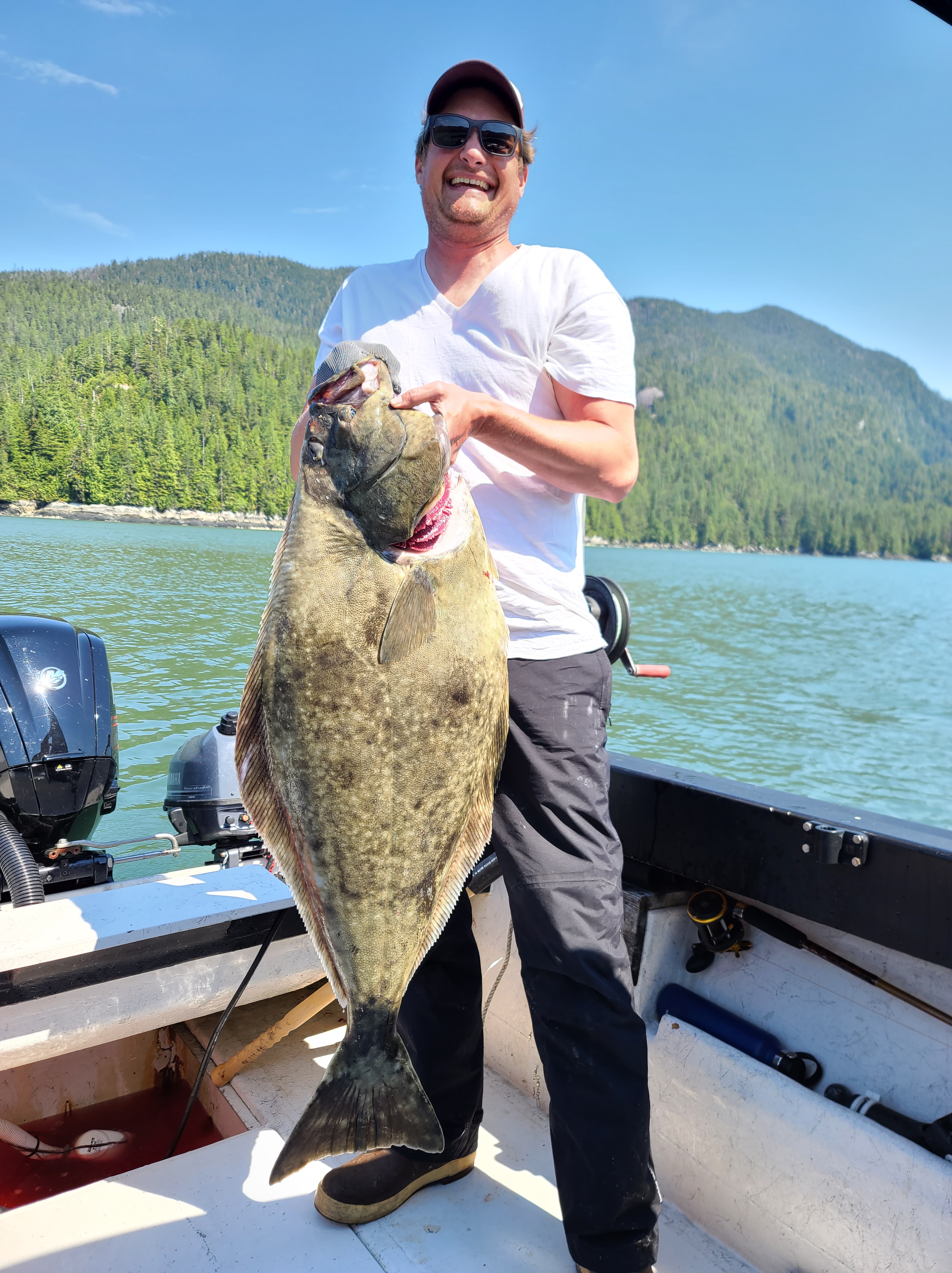 What a 100 lb Pacific Halibut looks like. It’s as big as she is! This is why people pay 1000 dollars a day to come here and fish.